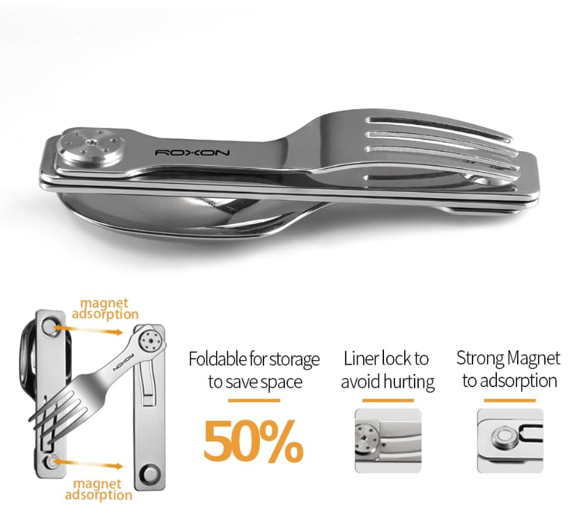 2 in 1 Camping Utensil – Folding Fork & Spoon, Detachable Stainless Steel Cutlery