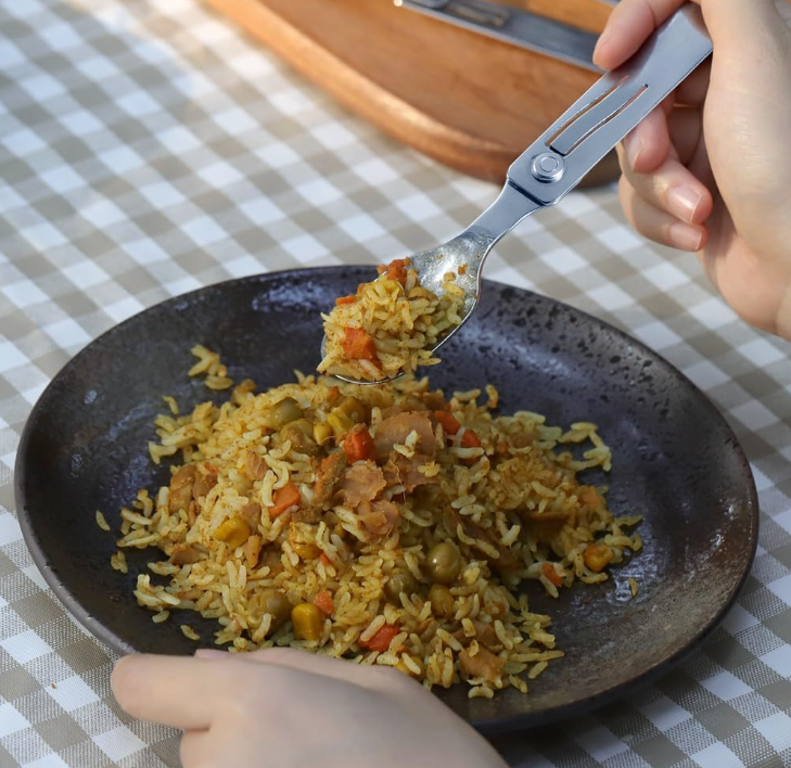 One utensil set that does it all: eat, cut, stir, and pack away in seconds.